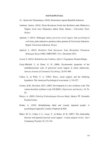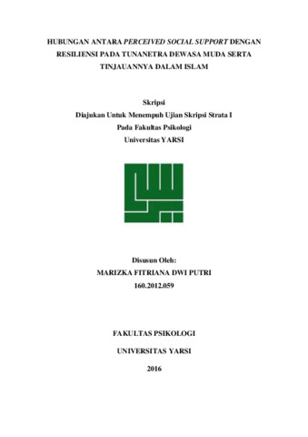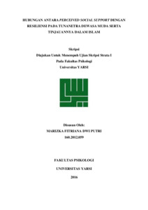 HUBUNGAN ANTARA PERCEIVED SOCIAL SUPPORT DENGAN RESILIENSI PADA TUNANETRA DEWASA MUDA SERTA TINJAUANNYA DALAM ISLAM