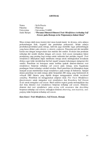 Masa remaja ialah masa transisi dari masa kanak-kanak ke dewasa, serta adanya perkembangan fisik, kognitif dan perubahan psikososial. Selain adanya perubahan-perubahan pada remaja, individu juga memiliki tugas perkembangan yang harus dilalui yaitu identity vs identity confusion. Pencarian jati diri memiliki kaitan erat dengan mengevaluasi dan menilai diri sendiri. Evaluasi dan penilaian terhadap diri sendiri disebut dengan self esteem. Self esteem merupakan faktor pendukung yang penting bagi remaja untuk terhindar dari perilaku negatif. Trait mindfulness diharapkan dapat membantu remaja untuk meningkatkan kesadaran dirinya agar tidak memikirkan hal-hal negatif ataupun kekurangan mengenai diri sendiri. Penelitian ini bertujuan untuk melihat apakah dimensi-dimensi trait mindfulness berperan terhadap self esteem pada remaja, serta bagaimana pandangan Islam terhadap variabel tersebut. Hasil penelitian ini diharapkan dapat menjadi acuan memberikan terapi mindfulness pada remaja di Indonesia. Sampel dalam penelitian ini ialah remaja akhir berjumlah 200 orang yang berdomisili di wilayah DKI Jakarta yang dipilih dengan menggunakan teknik incidental sampling. Penelitian ini menggunakan adaptasi skala Five Facet Mindfulness Questionnaire untuk mengukur trait mindfulness dan Rosenberg Self Esteem Scale untuk mengukur self esteem. Hasil analisis regresi ganda menunjukkan dua dari lima dimensi trait mindfulness berperan terhadap self esteem. Dimensi- dimensi dari trait mindfulness yaitu acting with awareness dan describing berperan terhadap self esteem, sedangkan dimensi observing, non-reactivity, non- judging tidak berperan terhadap self esteem.