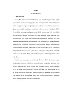 Uncontrolled Keywords: Remaja, Self- efficacy akademik, Gaya kelekatan.