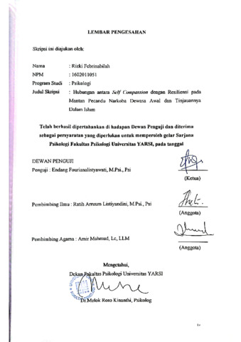 HUBUNGAN ANTARA SELF COMPASSION DENGAN RESILIENSI PADA MANTAN PECANDU NARKOBA DEWASA AWAL DAN TINJAUANNYA DALAM ISLAM