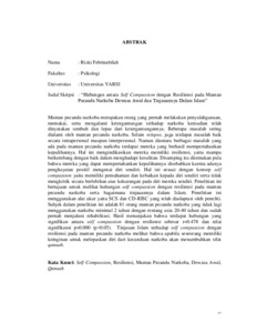 Febrinabilah, Rizki (2016) HUBUNGAN ANTARA SELF COMPASSION DENGAN RESILIENSI PADA MANTAN PECANDU NARKOBA DEWASA AWAL DAN TINJAUANNYA DALAM ISLAM. Diploma thesis, Universitas YARSI.