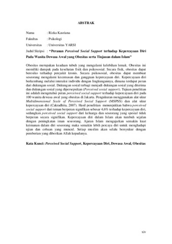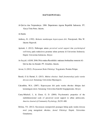 Kasriana, Riska (2016) PERANAN PERCEIVED SOCIAL SUPPORT TERHADAP KEPERCAYAAN DIRI PADA WANITA DEWASA AWAL YANG OBESITAS SERTA TINJAUAN DALAM ISLAM. Diploma thesis, Universitas YARSI.