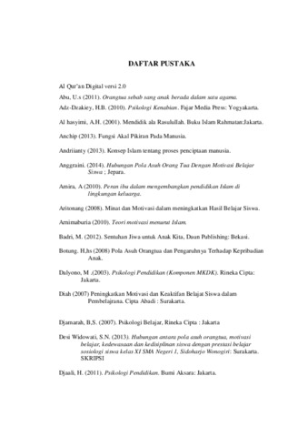 Arianingsih, Lia Trisni (2015) PERBEDAAN MOTIVASI BELAJAR BERDASARKAN POLA ASUH ORANGTUA PADA SISWA SDN X PETANG JAKARTA PUSAT SERTA TINJAUANNYA MENURUT AGAMA ISLAM. Diploma thesis, Universitas YARSI.