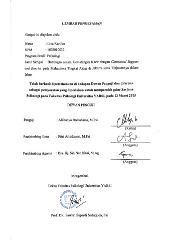 Kartika, Lina (2015) Hubungan antara Kematangan Karir dengan Contextual Support and Barrier pada Mahasiswa Tingkat Akhir di Jakarta serta Tinjauannya dalam Islam. Diploma thesis, Universitas YARSI.