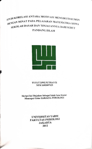 Putranti, Tutut Dwi (2012) Studi korelasi antara motivasi mengikuti kumon dengan minat pada pelajaran matematika siswa sekolah dasar dan tinjauannya dari sudut pandang islam. Diploma thesis, Universitas YARSI.