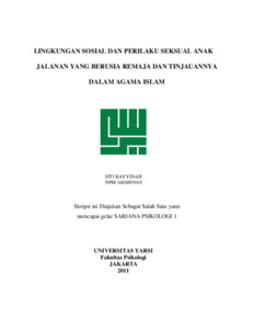 Bayyinah, Siti (2011) LINGKUNGAN SOSIAL DAN PERILAKU SEKSUAL ANAK JALANAN YANG BERUSIA REMAJA DAN TINJAUANNYA DALAM AGAMA ISLAM. Diploma thesis, Universitas YARSI.