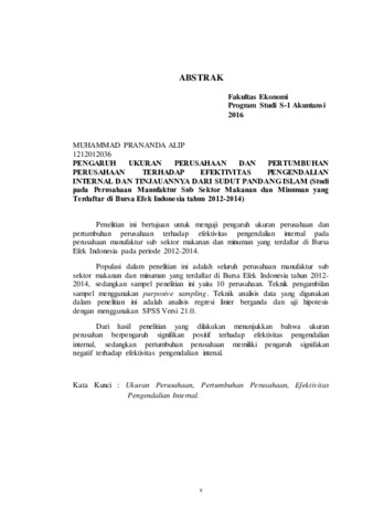Alip, Muhammad Prananda (2016) PENGARUH UKURAN PERUSAHAAN DAN PERTUMBUHAN PERUSAHAAN TERHADAP EFEKTIVITAS PENGENDALIAN INTERNAL DAN TINJAUANNYA DARI SUDUT PANDANG ISLAM (Studi Penelitian pada Perusahaan Manufaktur Sub Sektor Makanan dan Minuman yang Terdaftar di Bursa Efek Indonesia Tahun 2012-2014). Diploma thesis, Universitas YARSI.
